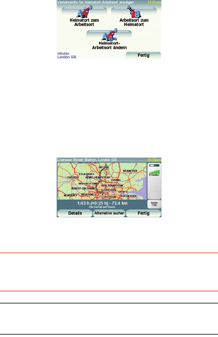 2. Tippen Sie auf Verkehrsinfo für Heimatort-Arbeitsort anzeigen.