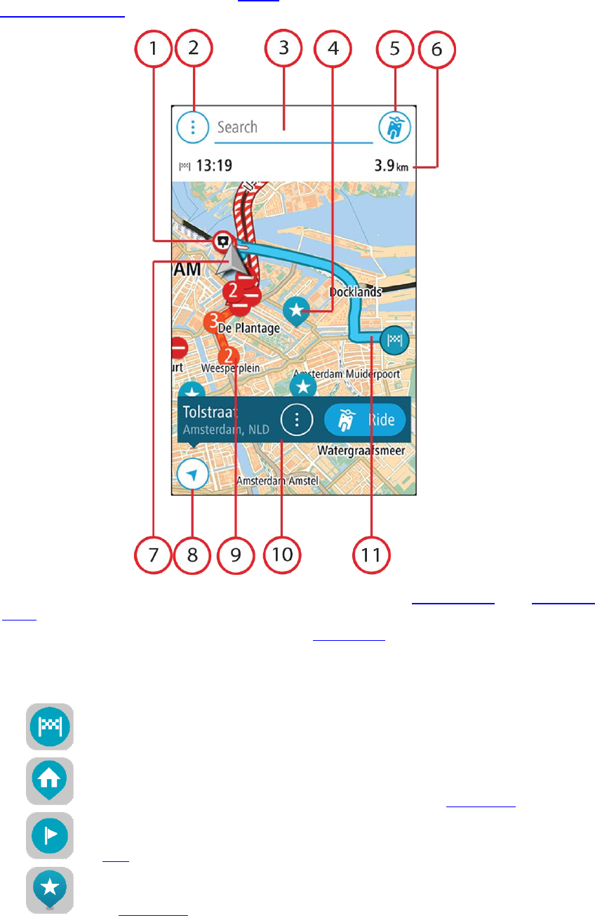 4. Kartensymbole: Auf der Karte werden Symbole verwendet, die Ihr Ziel und Ihre gespeicherten