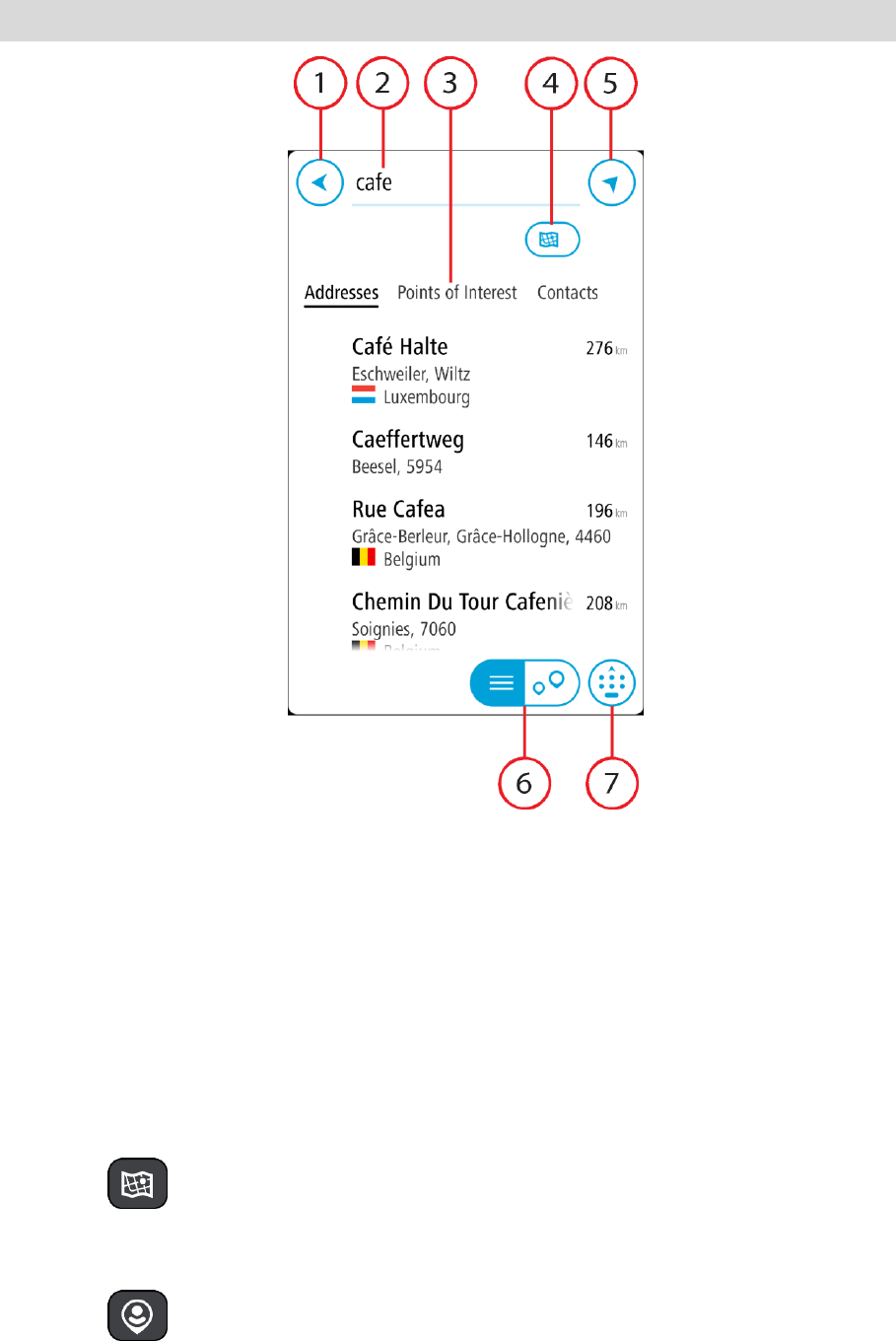 Wählen Sie Adressen, Sonderziele oder Kontakte aus, die in der Ergebnisspalte angezeigt