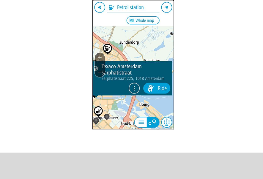 Auf der Karte wird ein Pop-up-Menü geöffnet, das den Namen der Tankstelle anzeigt.