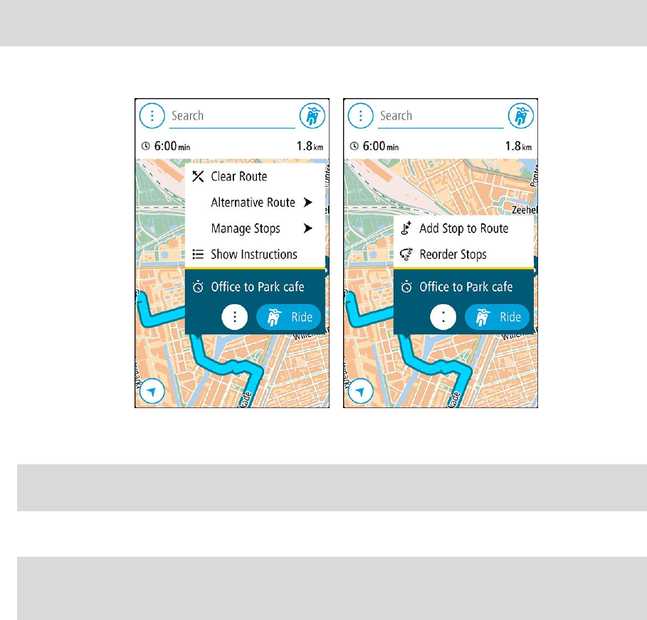 - Über das Menü „Aktuelle Route“ einen Stopp zur Route hinzufügen