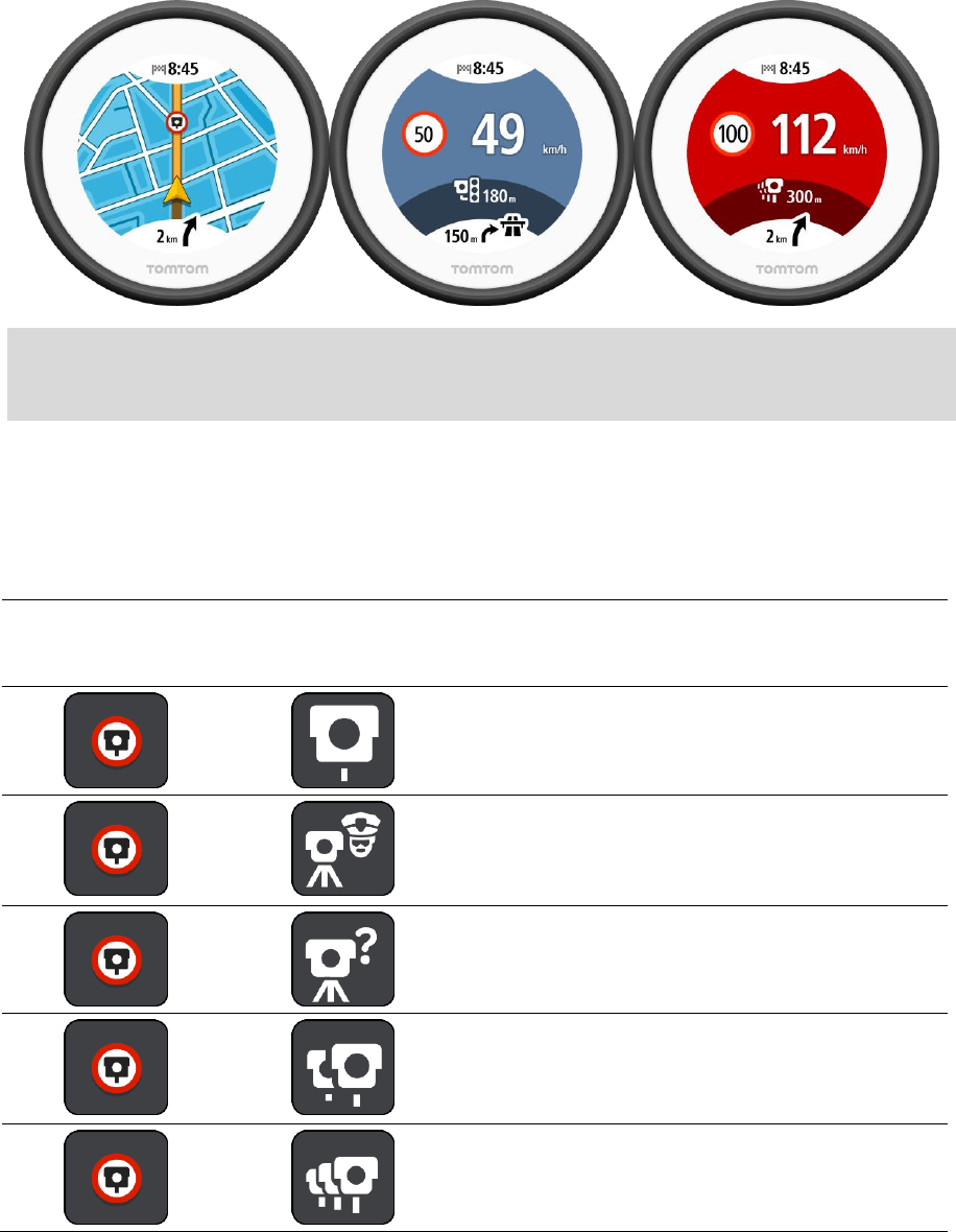 Sie werden vor den folgenden Arten von Radarkameras gewarnt:
