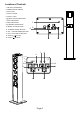 Power Source Insert the small plug from the supplied AC/DC Adaptor to the DC IN Jack on the unit. Insert the AC/DC adaptor to a wall outlet having AC 100-240V~, 50/60 Hz. TO DC IN JACK NOTE: This AC/DC Adaptor is intended to be correctly orientated in a vertical or floor mount position. To Wall Outlet Installation 1. Main Body 2. Wooden Base 3. Screws 4. Speaker Net 5. Speakers 6. Remote Sensor 6 5 1 4 2 3 The speaker net can take out and reassemble as the figures above.