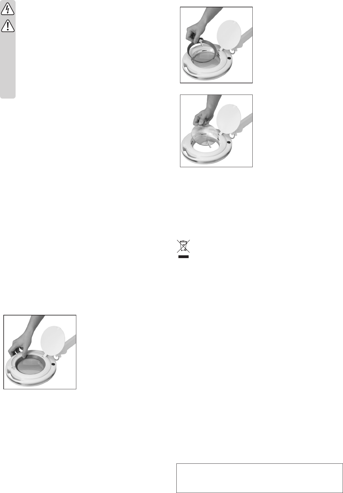 • Replace the lens after cleaning. Turn the bayonet catch clockwise to secure the