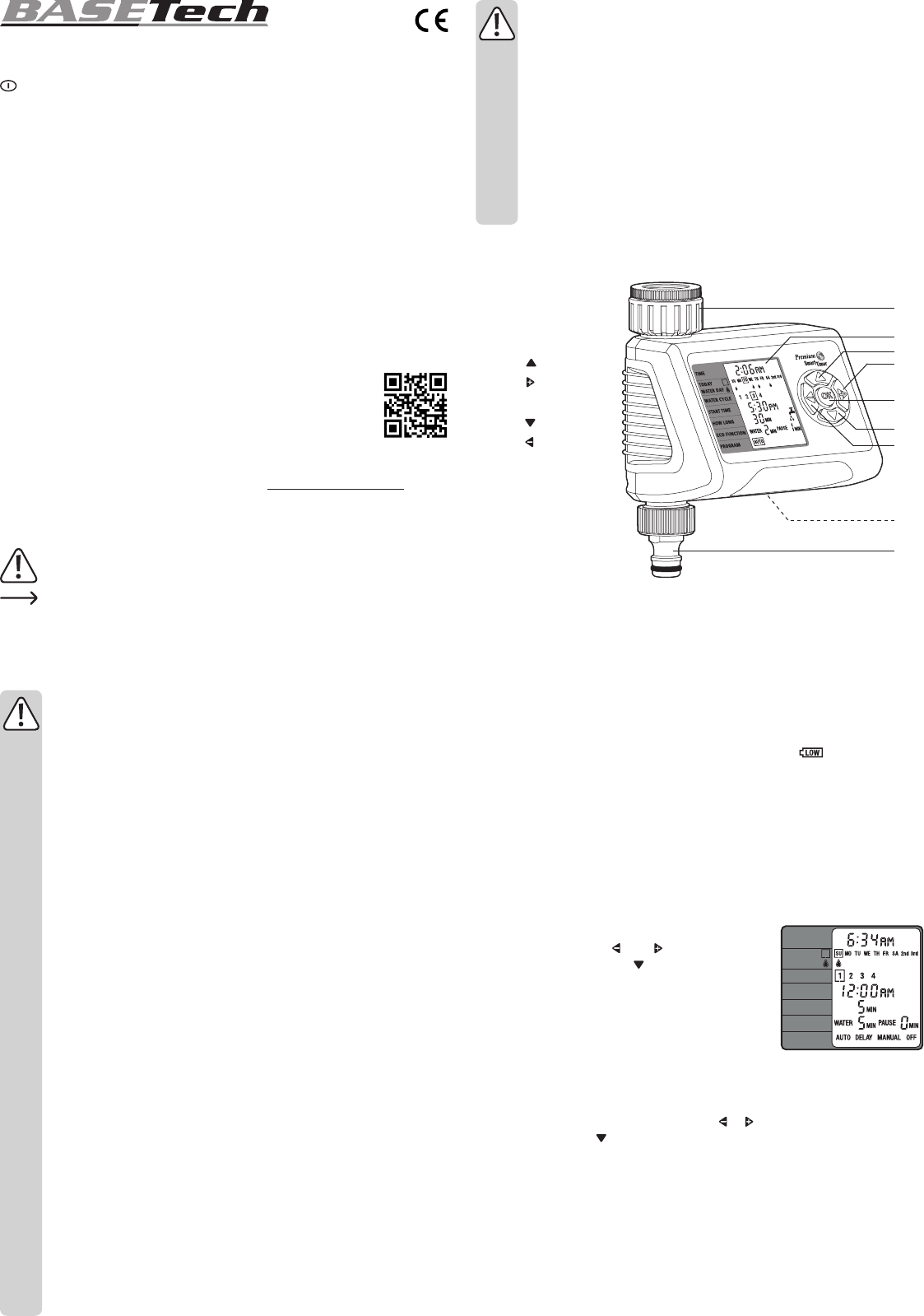 Il prodotto è progettato per l’irrigazione automatica delle piante. Il prodotto è impermeabile
