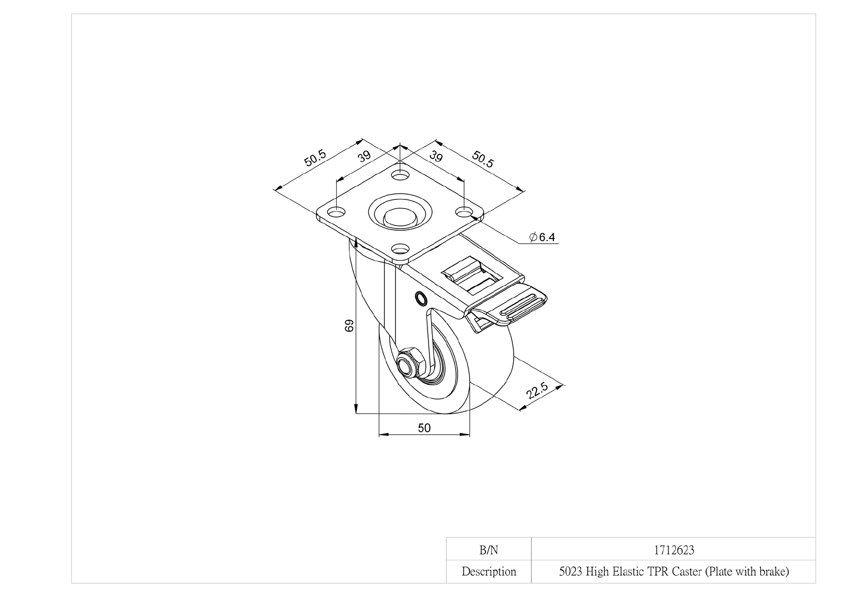 TOOLCRAFT TO-5137869 Swivel castor with parking brake and 50 mm mounting plate