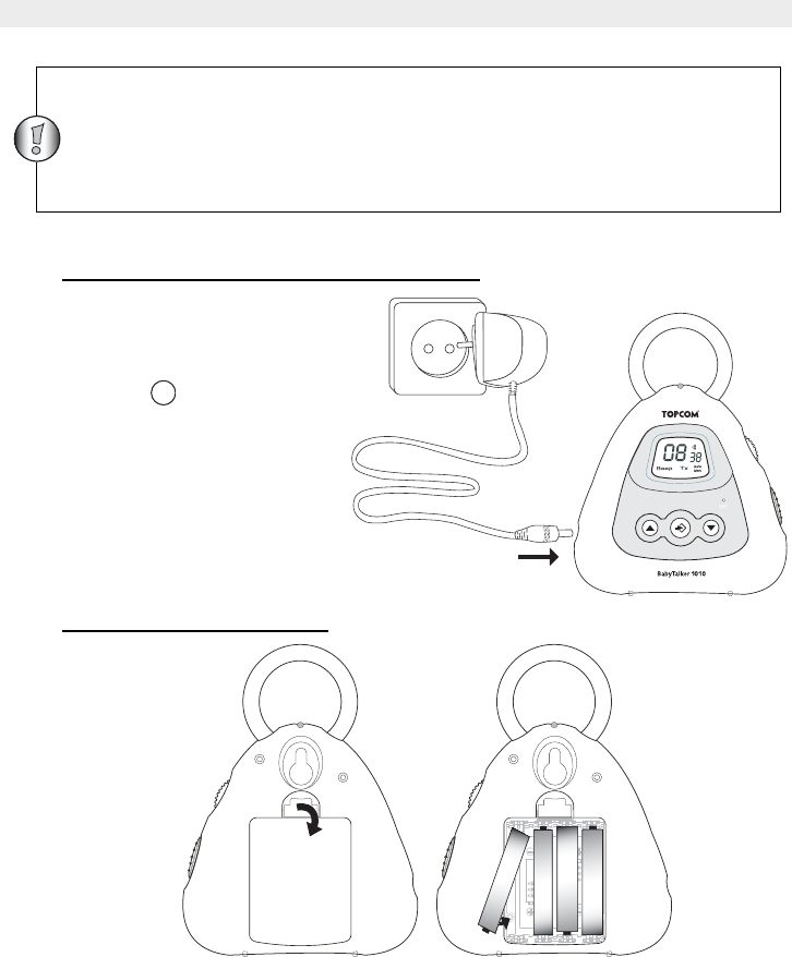 Ao invés de utilizar o adaptador de potência, a unidade do bebé pode utilizar baterias