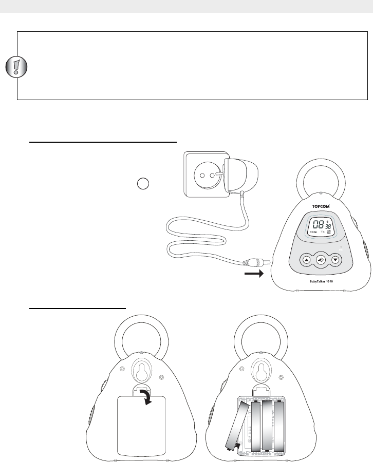 Namísto použití adaptéru napájení lze dtskou jednotku napájet z alkalických baterií typu