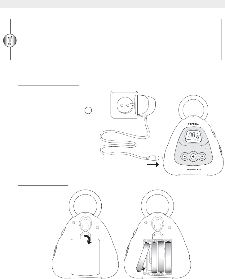 Het babytoestel werkt ofwel met een netadapter OFWEL met niet-