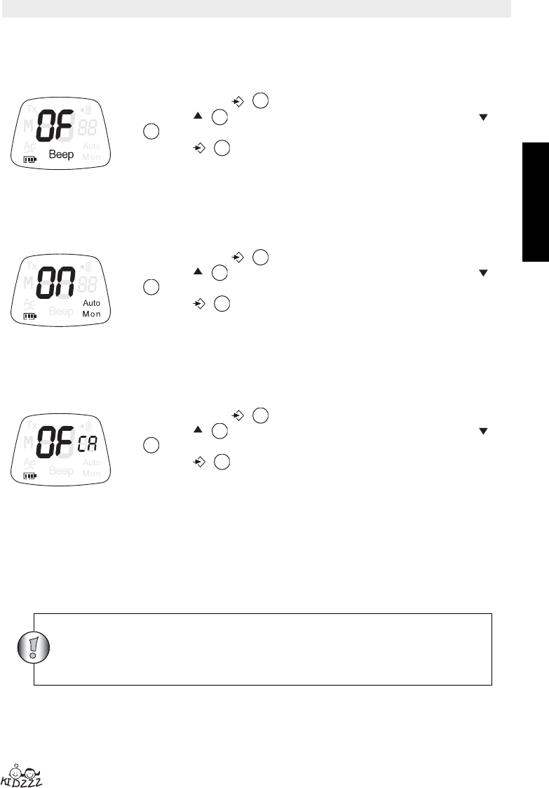 Het babytoestel zal een alarmtoon zenden wanneer u de VOX-functie activeert. Na de