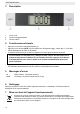 TOPCOM WG-2491 Description 1. 2. 3. LCD display ON/OFF/TARA-button UNIT-button ENGLISH 3 4 • • • • Simple operation Press the ON/OFF/TARA-button (2). Press the UNIT - button (3) to select ‘Kilogram (kg)’, ‘Stone (st)’ or ‘Pound (lb)’ Gently place the baby on the pan. The babies weight (maximum 20Kg) flashes on the display after a few seconds. If you use a towl to lay the baby on, it should be placed on the pan before switching on.