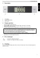 TOPCOM WG-2491 3 Popis 1. 2. 3. LCD displej Tlačítko ZAP/VYP/VYVÁŽENÍ Tlačítko JEDNOTKA 4 Jednoduchý provoz • • • • Stiskněte tlačítko Tlačítko ZAP/VYP/VYVÁŽENÍ (2). Stiskněte tlačítko JEDNOTKA (3) pro výběr ‘Kilogram (kg)’, ‘Stone (st)’ nebo ‘Libra (lb)’ Opatrně položte dítě na váhu. Hmotnost dítěte (maximálně 20Kg) bude po pár sekundách blikat na displeji. Jestliže používáte pro podložení dítìte ruèník, je tøeba jej na misku položit ještì pøed zapnutím.