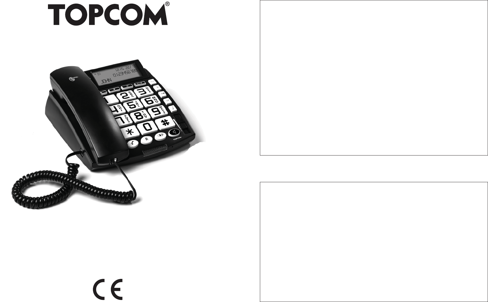 2 UK NL FR DE ES SE DK NO FI IT PT CZ GR PL SK 23 21 1 20 2 19 3 18 17 4 24 5 6 7 16 8 15 25 9 14 13 12 11 10 To be connected to the public analogue telephone network. Geschikt voor aansluiting op het openbare analoog geschakelde telefoonnetwerk. Il est destiné à être raccordé au réseau de télécommunication public. Kompatibel für den analogen telefonanschluss. Conexión a la red telefónica analógica. For anslutning til det analoga nätverket. Tilsluttes til det analoge telefonfastnet.