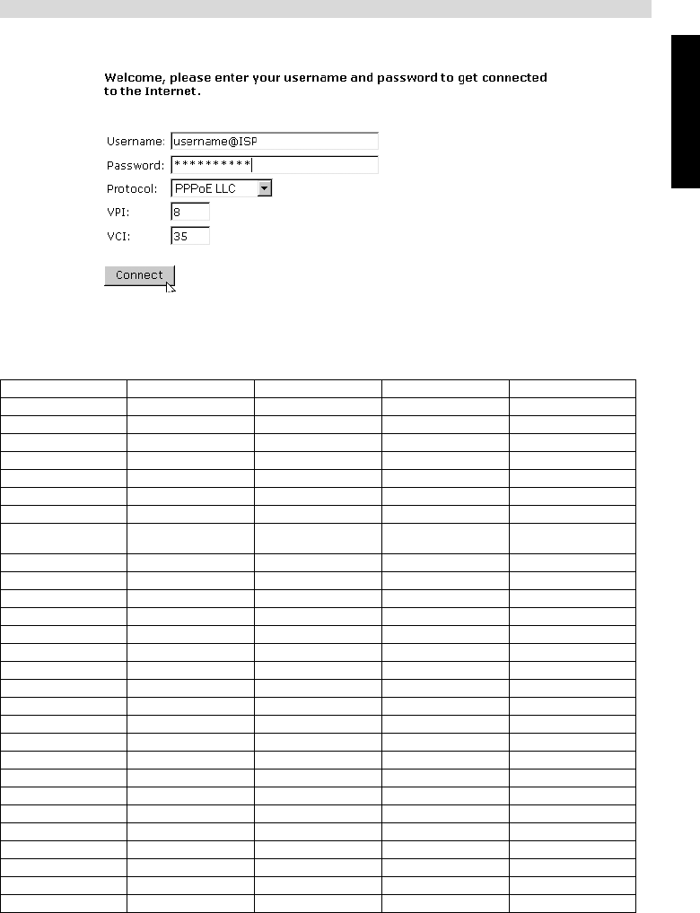 --> Please make sure that the connection protocol and VPI/VCI settings are correct.