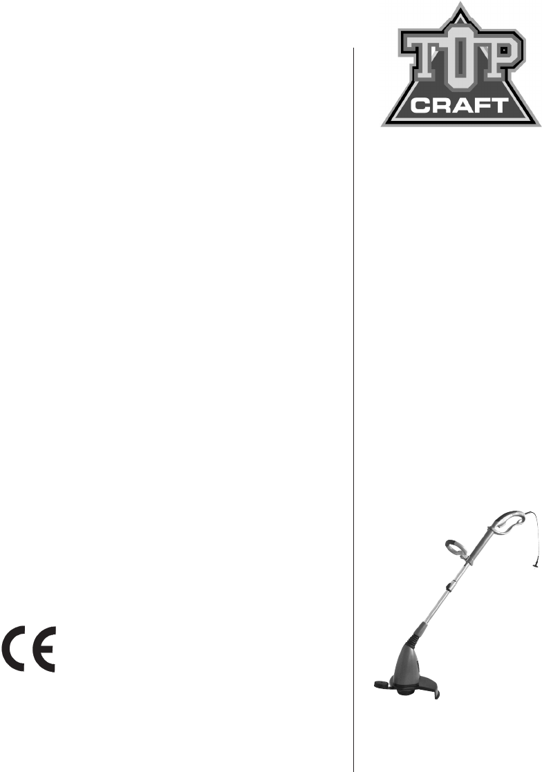 GB 1. Items supplied (see Figure 1) 1. 2. 3. 4. 5. 6. 7. 8. Power cable Upper handle On/Off switch Handle adjusting button Auxiliary handle Height adjuster Guard hood Edge guide 2. Important notes Please read the directions for use carefully and observe the information provided. It is important to consult these instructions in order to acquaint yourself with the grass trimmer, its proper use and safety precautions. Bitte bewahren Sie die Hinweise für späteren Gebrauch sicher auf.