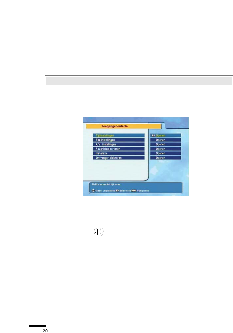 betekend dat de specifieke menu's alleen toegangelijk zijn met de PIN code.