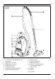 A = Ouverture du compartiment du sac à poussière B = Réglage de la puissance * C = Rangement accessoires D = Touche marche/arrêt E = Parking horizontal F = Indicateur de remplissage de sac G = Pédale d'enrouleur de câble H I J K L = Parking vertical = Suceur tapis/sols durs = Poignée de transport = Cliquet de fixation du flexible = Tube métal télescopique* 2 tubes métal* M = Poignée N = Flexible *Suivant modèles 2