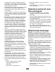 • • • • • • • • • • • • • Betjen ikke maskinen, når der er risiko for få maskinen til at vælte. Højt græs kan skjule forhindringer. Vær forsigtig, når du nærmer dig blinde hjørner, buske, træer eller andre genstande, der kan blokere for udsynet. Hold altid øje med og undgå lave nedhæng såsom grene på træer, dørrammer, gangbroer osv. Se bagud og ned for at sikre, at der er fri bane, før du bakker. Kør ikke maskinen i nærheden af bratte afsatser, grøfter eller volde.