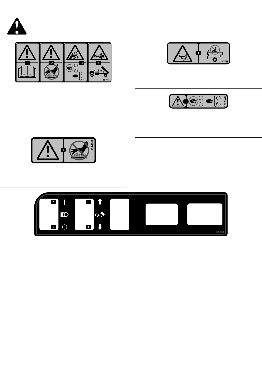 以下のラベルや指示は危険な個所の見やすい部分に貼付してあります。破損したりはがれたりし