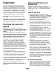 • Sepa que las cargas pesadas aumentan la ADVERTENCIA Los cambios bruscos de terreno pueden hacer que el volante se mueva repentinamente, lo que podría causar lesiones en manos y brazos. • distancia de frenado y reducen la capacidad de hacer giros cerrados sin volcar. El espacio de carga posterior es para llevar cargas solamente, no para llevar pasajeros. Manejo y mantenimiento de las baterías • Reduzca la velocidad al conducir en terrenos accidentados y cerca de bordillos.