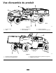 Vue d'ensemble du produit g034154 Figure 4 1. Loquet du capot 3. Plateau de chargement 5. Chargeur de batterie 2. Volant 4. Flèche d'attelage 6. Levier du plateau de chargement g034544 Figure 5 1. Poignée de maintien du passager 3. Support d'accessoire arrière du plateau de chargement 2. Levier de frein de stationnement 4.
