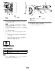 5. 如图53 所示,用梅花头螺丝(¼ x 1¼ 英寸)、六角 凸缘螺母(¼ 英寸)和扁平垫圈(5/16 英寸)将挡 泥板松松地安装到脚踏板的顶部。 g193194 图 54 为了清晰起见,部分零件被隐藏 1. 扎带 2. 将阻风门拉索连接到发动机(图55)。 3. 按照如下方式调节阻风门拉索: g198839 图 53 为了清晰起见,车轮被隐藏 1. 梅花头螺丝( 1/4 x 11/4 英 3. 寸) 挡泥板 2. 脚踏板 六角凸缘螺母 ( 1/4 英 寸) 6. 对另一个挡泥板重复此步骤。 7. 上紧所有五金件。 4. 2. 阻风门拉线 A. 将阻风门控制装置放到OFF (关闭)位置。 B. 将油门拉索端部的弯头放入阻风门总成(图 55)。 注 意 : 固定阻风门拉索时,应确保阻风板处 于完全打开位置。 14 布置并连接阻风门拉索(仅限汽油机器) 此程序中需要的物件: 1 g036767 图 55 扎带 1. 程序 1. 拉索弯头 C.
