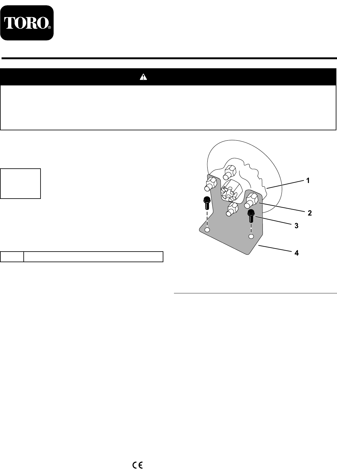 Form No. 3413-143 Rev B Finishingsett Workman® GTX-bruksbil Modellnr. 07045 Installasjonsveiledning ADVARSEL CALIFORNIA Proposition 65-advarsel Dette produktet inneholder et kjemikalie eller kjemikalier som staten California vet forårsaker kreft, fødselsdefekter eller forplantningsskade. Montering 1 Fjerne kassen og montere hjulenhetene Deler som er nødvendige for dette trinnet: 4 Hjul g190827 Figur 1 1. Nav 2. Hakemutter Prosedyre 1. 3. Skrue 4.