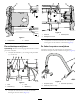 De rechter heupsteun losmaken 2. Koppel de parkeerremkabel los van de beide achterste remklauwen (Figuur 8). Verwijder en bewaar de voorste flensbout en flensmoer waarmee de voorzijde van de heupsteun aan de machine bevestigd is (Figuur 7). Opmerking: Snij kabelbinders waarmee de remkabel aan de machine bevestigd is door. 3. Koppel de gaskabel los van de gashendel en verwijder de kabel van de gasbeugel (Figuur 9). g033993 Figuur 9 1. Gaskabel g036761 Figuur 7 1. Heupsteun (lang) 3.