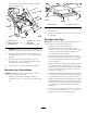 Einbau der Bodenplatte Befestigen Sie die hintere Bodenplatte mit den vier Bundbolzen (5/16" x 1¼"), den vier Schrauben (¼" x 1¼") und den Sicherungsmuttern an der Maschine (Bild 36). g036767 Bild 34 1. Krümmer am Bowdenzug 2. Klemmschraube Hinweis: Achten Sie darauf, dass die Chokeplatte vollständig geöffnet ist, wenn Sie das Chokekabel befestigen. 3. Befestigen Sie das Chokekabel mit der Klemmschraube in der richtigen Position (Bild 34). Einstellen des Schaltzugs g034126 Bild 36 1.
