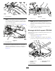 g035131 Figura 69 1. Tubazione del freno 2. Cablaggio fili g034833 Figura 67 1. Vite autofilettante (¼" x ¾") Montaggio del canale centrale 2. Raccordo a T Nota: Utilizzate la bulloneria rimossa in precedenza per completare la seguente procedura. 7. Rimuovete i bulloni e i dadi flangiati che fissano il supporto del braccio oscillante al canale centrale (Figura 68). 1.