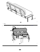 卸下塑料货斗 4. 使用吊运装置放下货斗。 1. 使用吊运装置吊起塑料货斗。 5. 2. 从支撑杆上卸下 3 个凸缘头螺丝(5/16 x ¾ 英 寸),从支撑杆上卸下 U 形架(图2)。 从机器后部的枢轴支架拧下 2 个枢轴螺栓(½ x 4½ 英寸)和 2 个锁紧螺母(½ 英寸)(图4)。 注 意 : 保留所有五金件,以备 安装后向座椅 (页 码 4)的 1 中的平板组件安装之用。 注 意 : 保留五金件,以备以后安装塑料货斗。 g037303 图4 1. 枢轴螺栓( 1/2 x 41/2 英 寸) 2. 枢轴支架 6. 松开货斗操纵杆,然后用吊运装置吊起并卸下货斗。 7. 如图5 所示,卸下 4 个凸缘头螺丝( 3/8 x 2½ 英 寸)和 4 个螺母( 3/8 英寸),从而将 2 个货斗闩 锁从机器机架上卸下。 g244196 图2 1. 支撑杆 3.