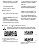 • • • • • • • • • • • • No sobrecargue nunca la máquina. La placa el combustible. La gasolina es extremadamente inflamable y los vapores son explosivos. No fume cerca de la máquina. Utilice solamente un recipiente para combustible homologado, portátil y no metálico. Una descarga de electricidad estática puede prender los vapores de combustible en un recipiente de combustible que no tenga conexión a tierra.