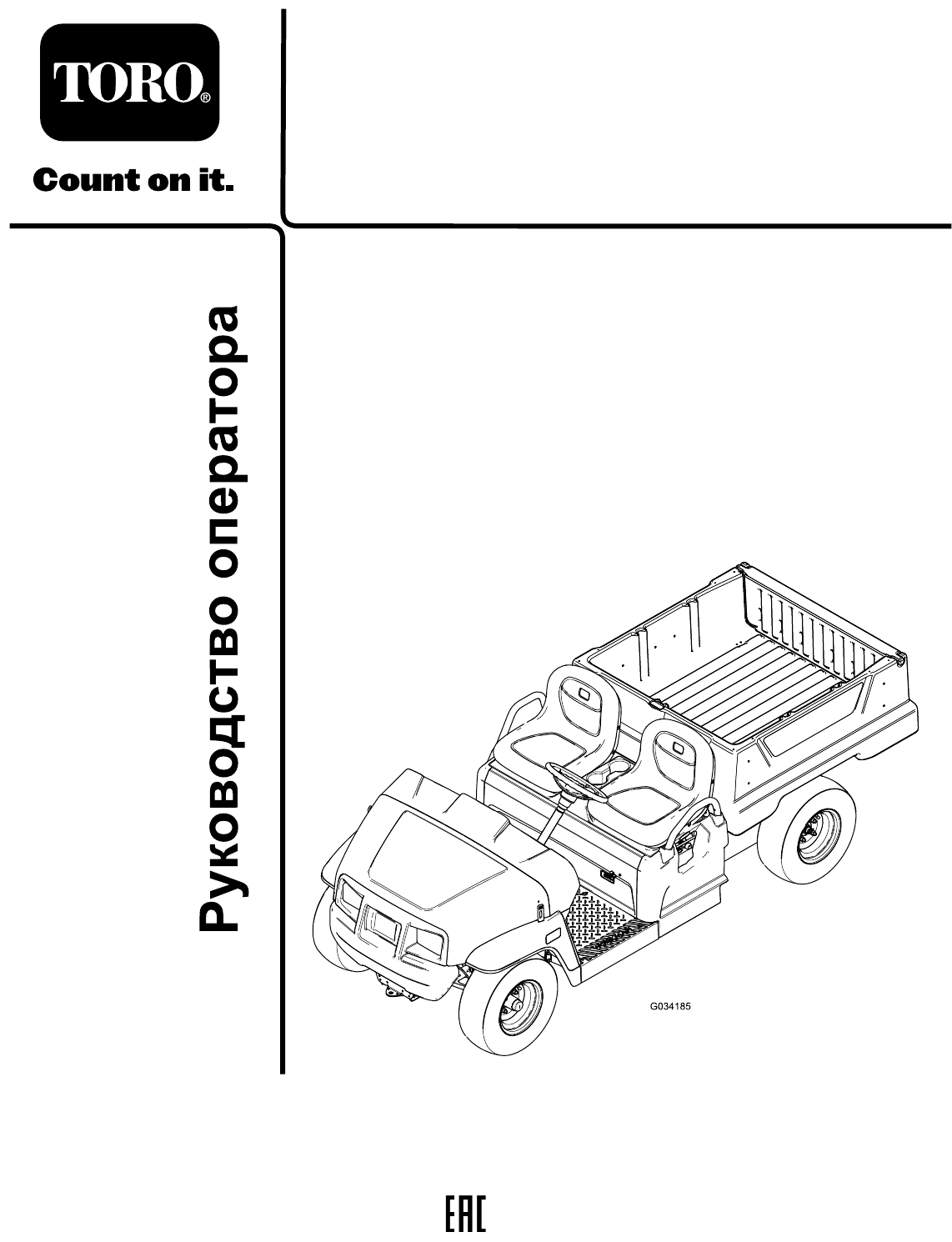 Form No. 3407-534 Rev C Технологический автомобиль Workman® серии GTX с электродвигателем Номер модели 07131—Заводской номер 316000001 и до Номер модели 07131TC—Заводской номер 316000001 и до Регистрация в www.Toro.com.