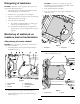 2. Fjern de flangebolte (3/8 x 2-1/2 tomme) og møtrikker, der fastgør længdevangen på maskinen (Figur 16). Gør dette på begge sider af maskinen. 5. Afmonter den selvskærende skrue, der fastgør T-stykket på midterkanalen (Figur 18). g034830 Figur 16 g034833 Figur 18 1. Flangebolt (5/16 x 3/4 tomme) 3. Længdevange 2. Flangebolt (3/8 x 2-1/2 tomme) 4. Flangemøtrik (3/8 tomme) 1. Selvskærende skrue (1/4 x 2. T-stykke 3/4 tomme) 6.