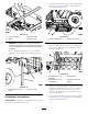 g036769 Рисунок 35 1. Соединитель с шаровым шарниром в сборе 4. Контргайка 2. Рычаг переключения передач в сборе 5. Зажимные гайки 3. Кронштейн троса переключения передач 6. Трос переключения передач g034126 Рисунок 36 3. Отрегулируйте рабочий ход троса между кронштейном и рычагом переключения передач в сборе так, чтобы трос обеспечивал включение нужных передач. 1. Фланцевый болт (5/16 x 1-1/4 дюйма) 3. Панель пола 2. Болт (1/4 x 1-1/4 дюйма) 4.
