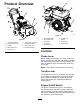 Product Overview g252291 Figure 5 1. Recoil-start handle 2. Fuel-shutoff valve 6. Throttle lever 7. Dipstick 6. Seed hopper and cover 3. Choke lever 8. Oil-drain plug 7. Seeding-rate gauge 4. Air-cleaner 5. Fuel-tank cap 9. On/Off switch g252290 Figure 4 1. Seeder-control lever 2. Self-propel drive bail 3. Handle 8. Depth-control lever 4. Blade-control bail 5. Fuel-tank cap 9. Recoil-start handle Controls Choke Lever Before starting a cold engine, move the choke lever (Figure 5) to the left.