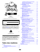 Entretien ATTENTION Un mauvais entretien de la machine peut entraîner la défaillance prématurée des divers systèmes et vous blesser ou blesser les personnes à proximité. Maintenez la machine bien entretenue et en bon état de marche, conformément aux instructions du présent manuel. Important: Reportez-vous au Manuel du propriétaire du moteur pour toutes procédures d'entretien supplémentaires.