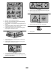 111–8217 1. Warning—keep hands and feet away from moving parts; wait for moving parts to stop. 119-2725 1. Warning—read the Operator's Manual. 2. Warning—remove the spark plug wire before performing any maintenance on the machine. 111–5941 3. Tipping hazard—do not operate on slopes greater than 10 degrees. 1. Warning—keep hands away from moving parts. 4. Thrown object hazard; crushing hazard, bystanders—keep bystanders a safe distance from the machine. 5.