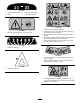 111-5630 1. Moving in reverse enabled 3. Empty the grass collector 2. Lights 4. Power Take-off (PTO) 119-2725 1. Warning—read the Operator's Manual. 111–5941 2. Warning—remove the spark plug wire before performing any maintenance on the machine. 1. Warning—keep hands away from moving parts. 3. Tipping hazard—do not operate on slopes greater than 10 degrees. 4. Thrown object hazard; crushing hazard, bystanders—keep bystanders a safe distance from the machine. 5.