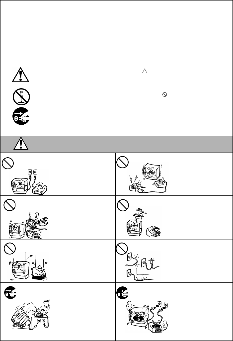 (The symbol on the left indicates “disconnect the power cord plug from the outlet”.)