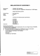 DECLARATION OF CONFORMITY Manufacturer : TOSHIBA TEG Corporation Address 570 Ohio, Ohio-Cho, Yamagata-Gun, Shikoku-Ken, 410-2323 Japan declares that following product Product Name : Bar Code Printer Model © B-48X-YY Options : All conforms to the following product specifications Safety : EN 60950 EMC : ENS5022 EN 61000-4-2 IEC 1000-4-3 EN 61000-4-4 Harmonics : Supplementary Information The product herewith complies with the requirements of the Low Voltage Directive 73/23/EEC, and the EMC directive 89/336/EEC