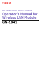 MULTIFUNCTIONAL DIGITAL SYSTEMS Operator’s Manual for Wireless LAN Module GN-1041 2-17-2, HIGASHIGOTANDA, SHINAGAWA-KU, TOKYO, 141-8664, JAPAN ©2005 TOSHIBA TEC CORPORATION All rights reserved R05082091200-TTEC 2005-09