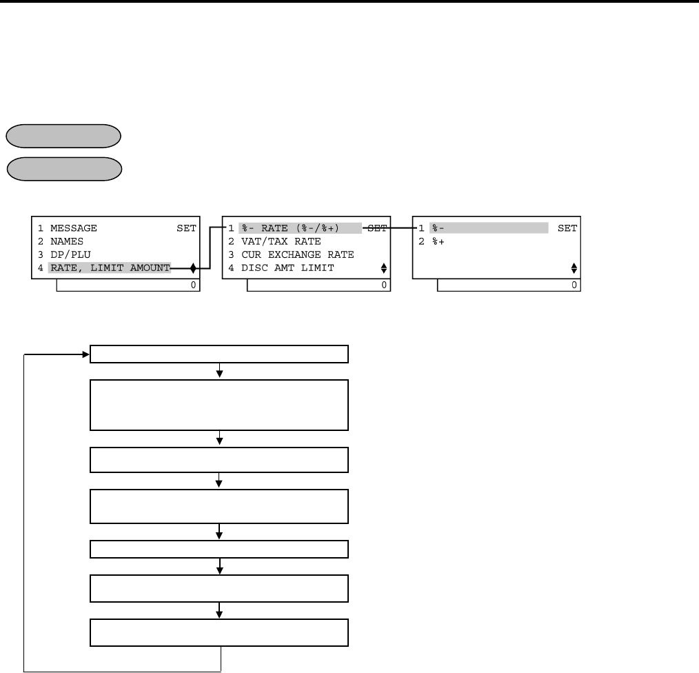 A preset rate may be set on each of the [%+] and [%-] keys, one independent rate for each key. Once a rate is