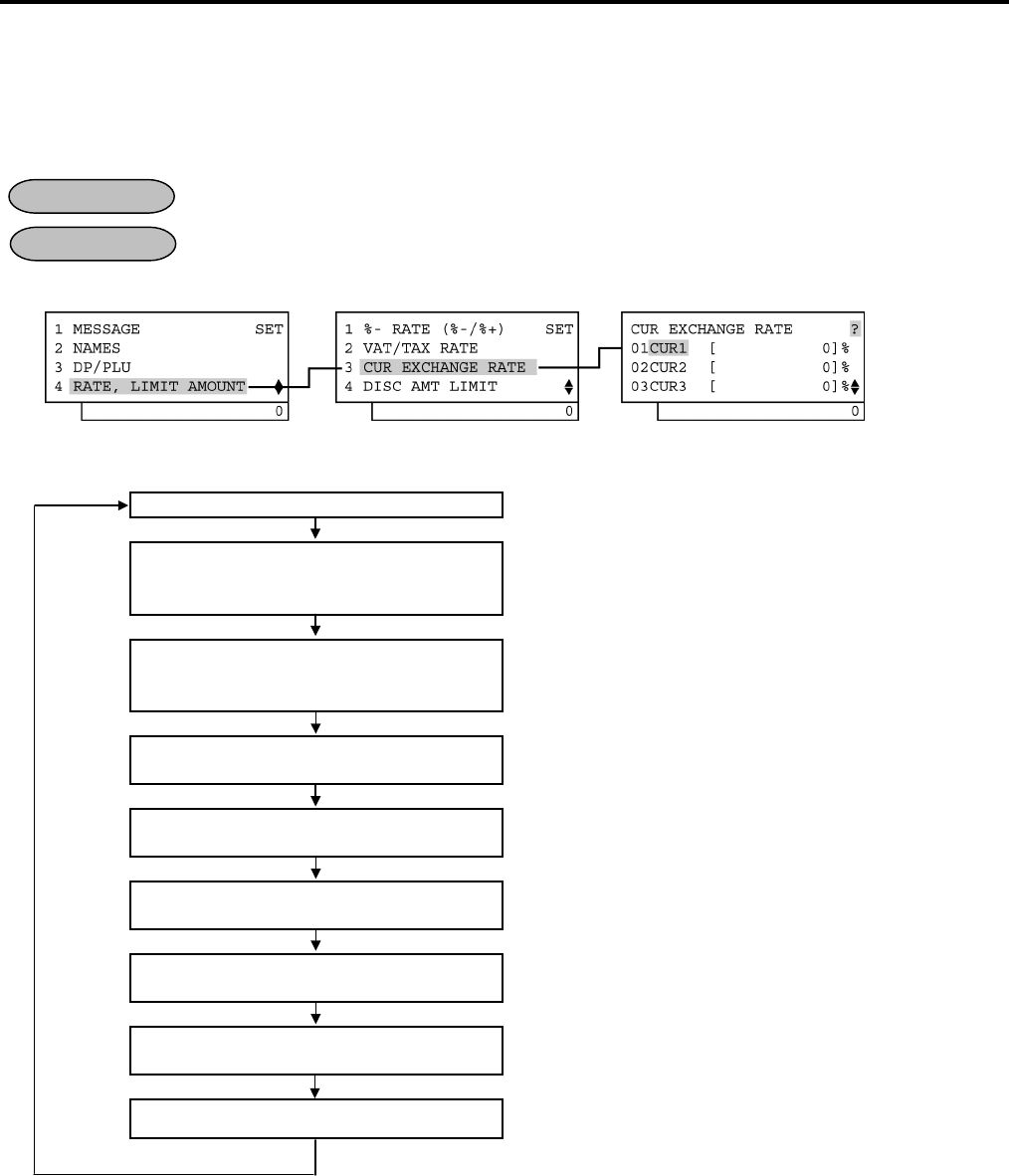 In this program, the rate of each foreign currency (corresponding to the [CUR1] to [CUR5] keys) will be set. By