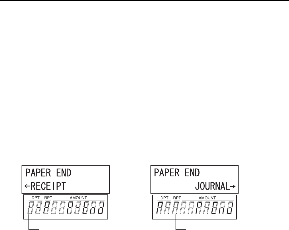 (3) When a new paper roll is set, only the [C] key is allowed to operate. The error message “PAPER END” will be