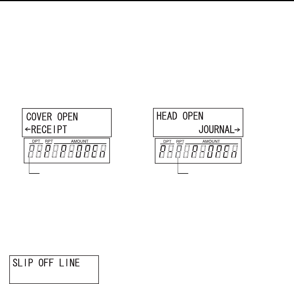 (2) When such a condition is detected, the front display indicates “COVER OPEN” (on the receipt printer side) or