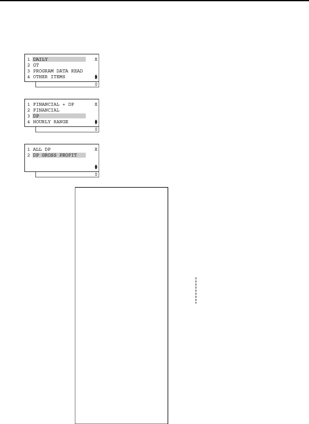 Select “DP GROSS PROFIT” with the [↓] or [↑] key, then depress