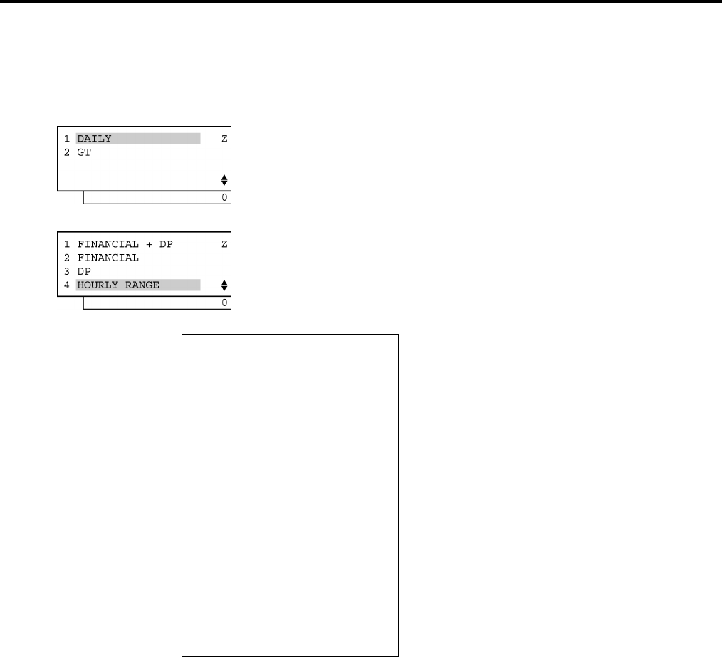 Select “HOURLY RANGE” with the [↓] or [↑] key, then depress the