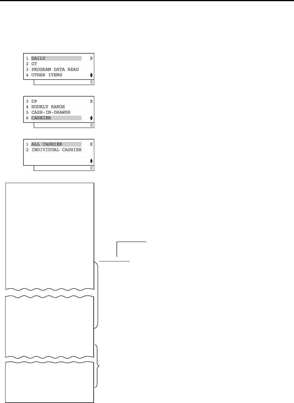 Select “ALL CASHIER” with the [↓] or [↑] key, then depress the [1]
