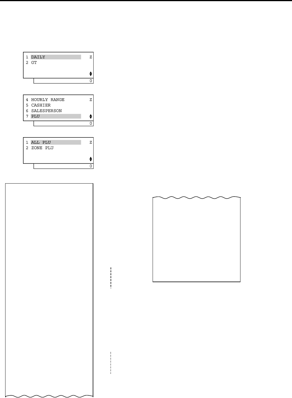 Select “PLU” with the [↓] or [↑] key, then depress the [7] or [Enter]